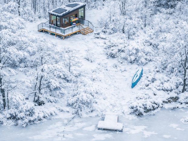 This cozy wilderness retreat in Haliburton, Ontario, is nestled in the heart of the Highlands. The cabin overlooks a serene paddling lake with expansive east- and west-facing views from your private dock. Witness golden sunrises or fiery sunsets, paddle or fish on the lake, or explore hiking and snowmobiling trails right from your doorstep. -