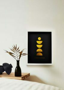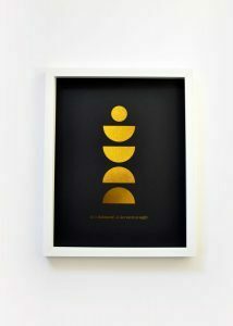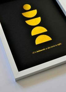 All is balanced as day turns to night. Inspired by cool, quiet nights around the fire, this rich black (100 lb. stock) art print with luxe gold foil rivals the solitude of the sky as it gently folds from day to night.