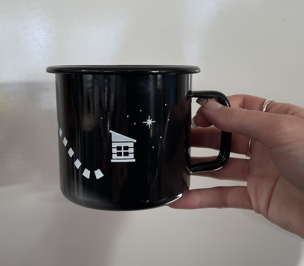Lightweight and durable, this classic stainless steel enamel-coated camping mug is a must-have for any outdoor excursion. Perfect for hot coffee around the fire or cold drinks on the dock. Attach it to your pack for easy access on those long hikes. Features an extra-wide handle, rolled halo rim, and a sleek black exterior. (16oz.)