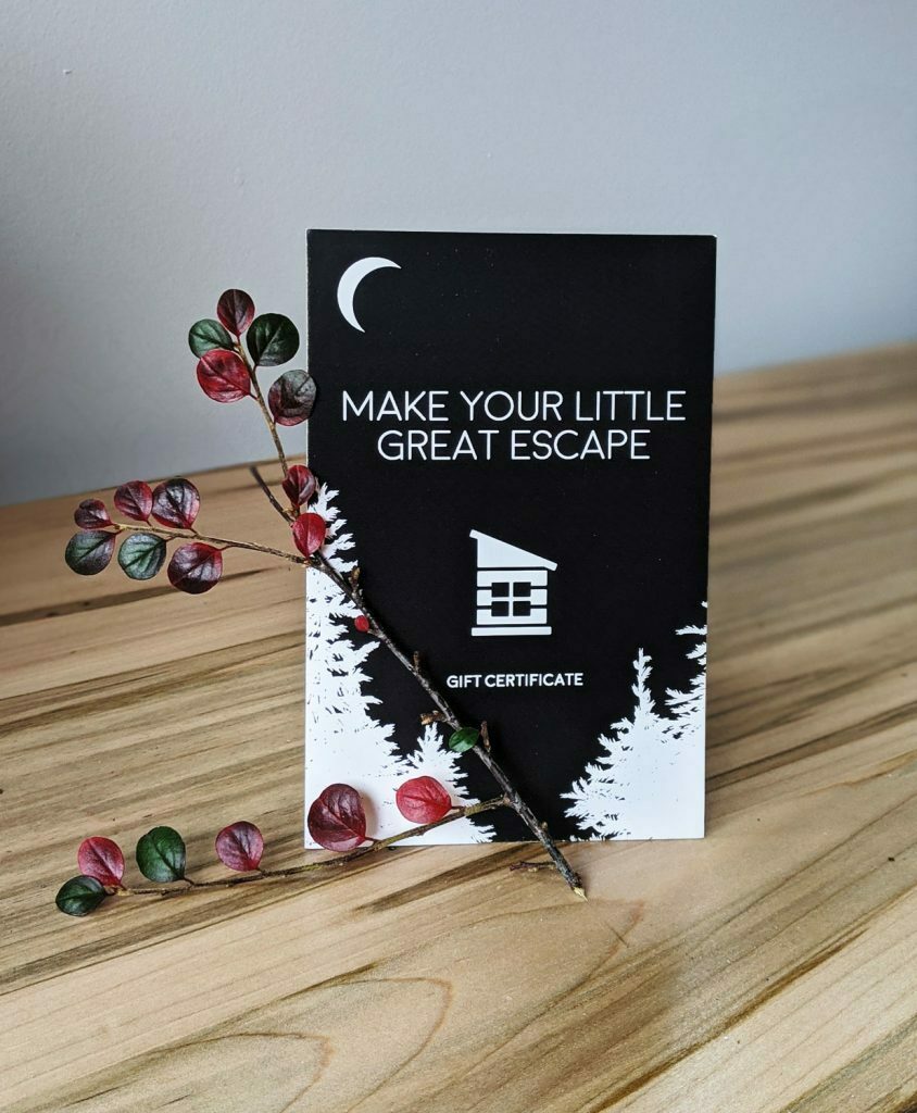 Give the gift of a cozy escape. CABINSCAPE gift cards can be purchased in amounts from $100 to $600 and are redeemable toward any cabin stay — a typical two-night weekend getaway is around $600.