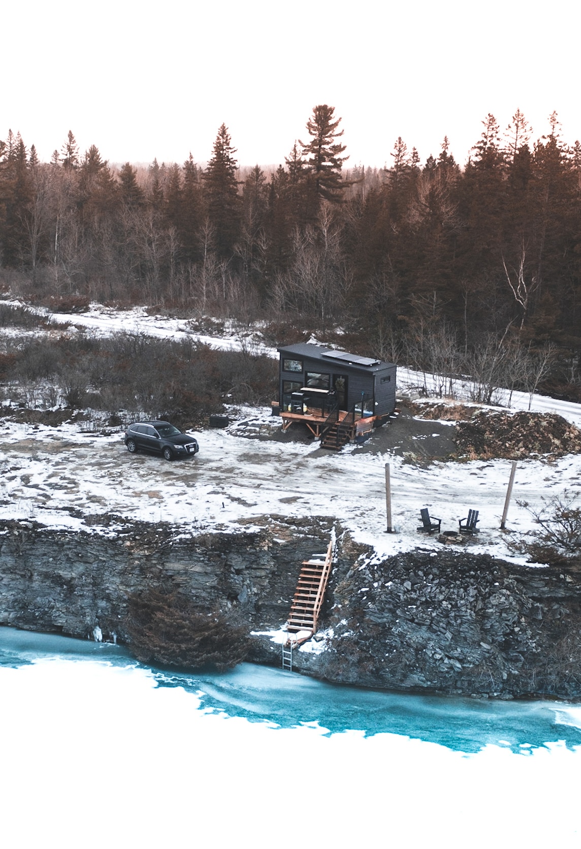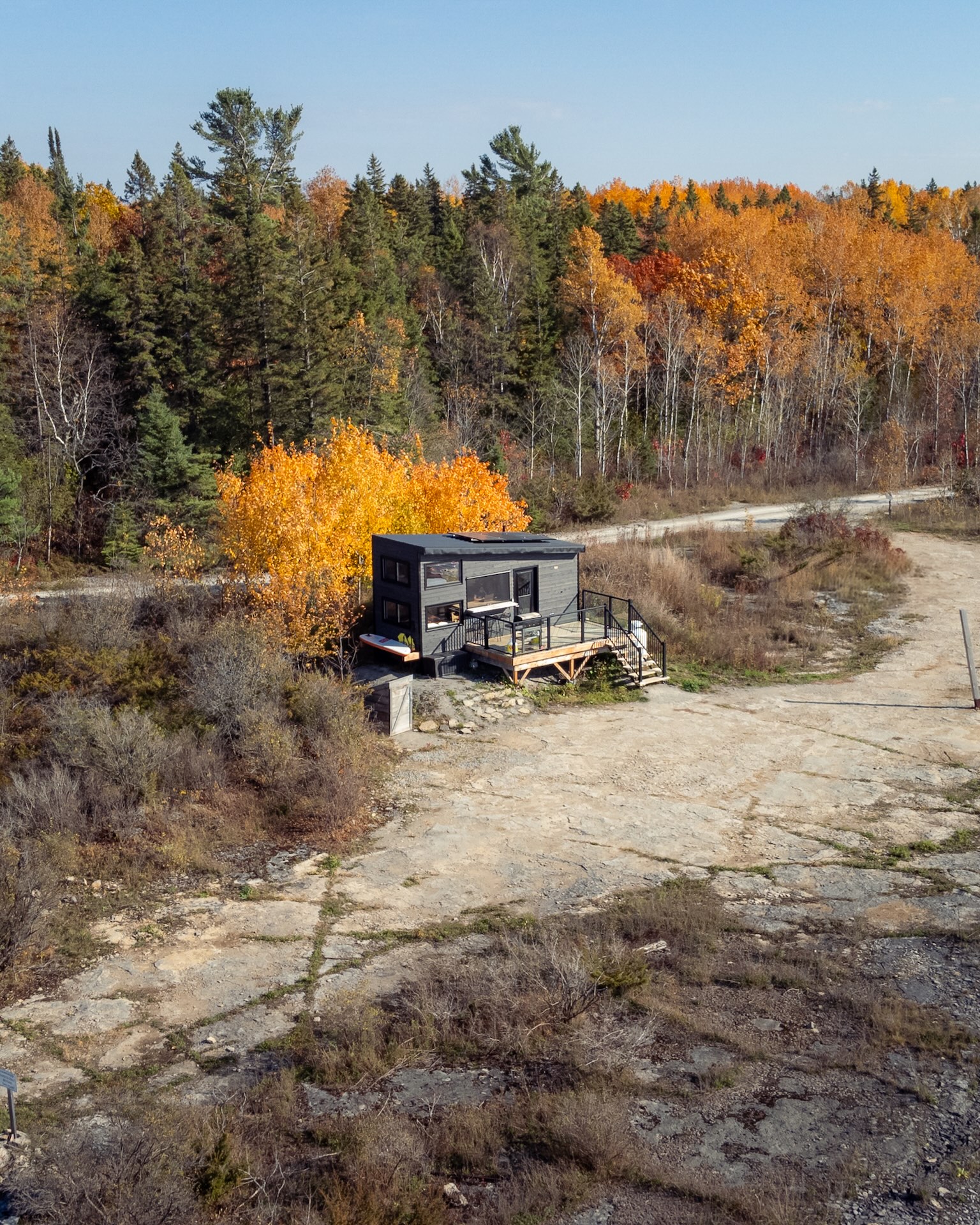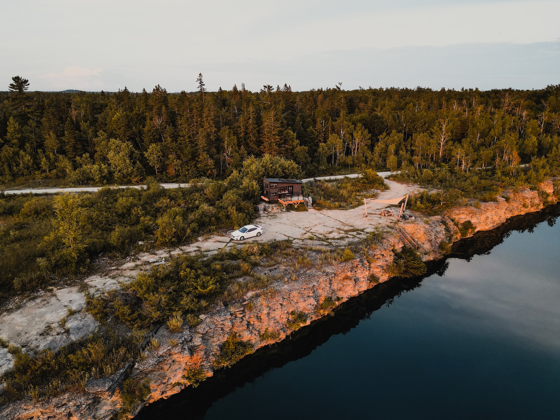 Perched on a stunning 230-acre property, Hawkweed Cabin overlooks a crystal-clear, spring-fed lake that was once a limestone quarry, offering an otherworldly escape just 1.5 hours from Toronto.
