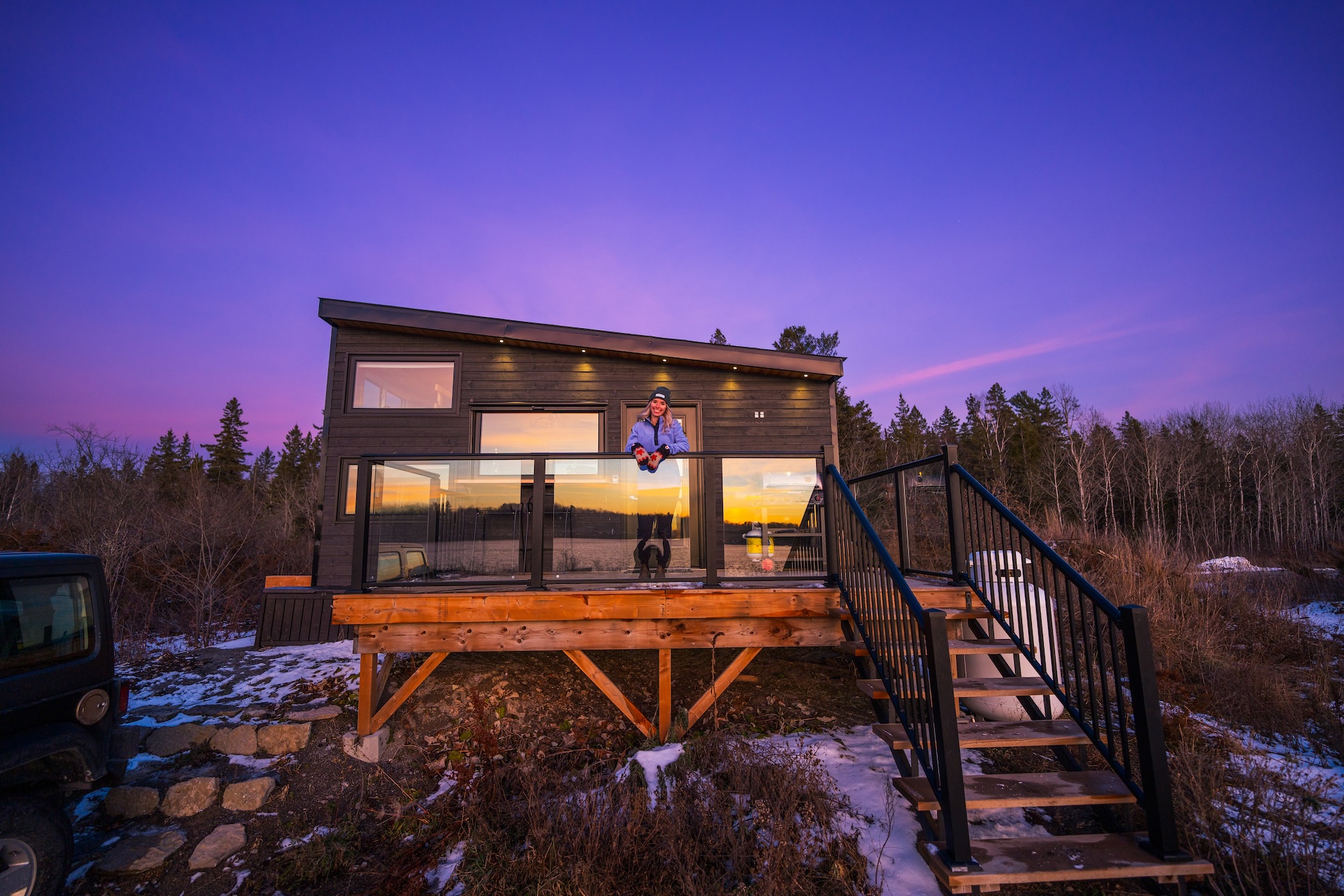 One of five secluded lakeside cabins, Hawkweed offers breathtaking views, on-site hiking trails, and direct water access from your own private dock. Each cabin comes fully equipped with a fire pit, BBQ, picnic table, Muskoka chairs, and complimentary paddleboard—swapped for snowshoes in winter for year-round adventure.