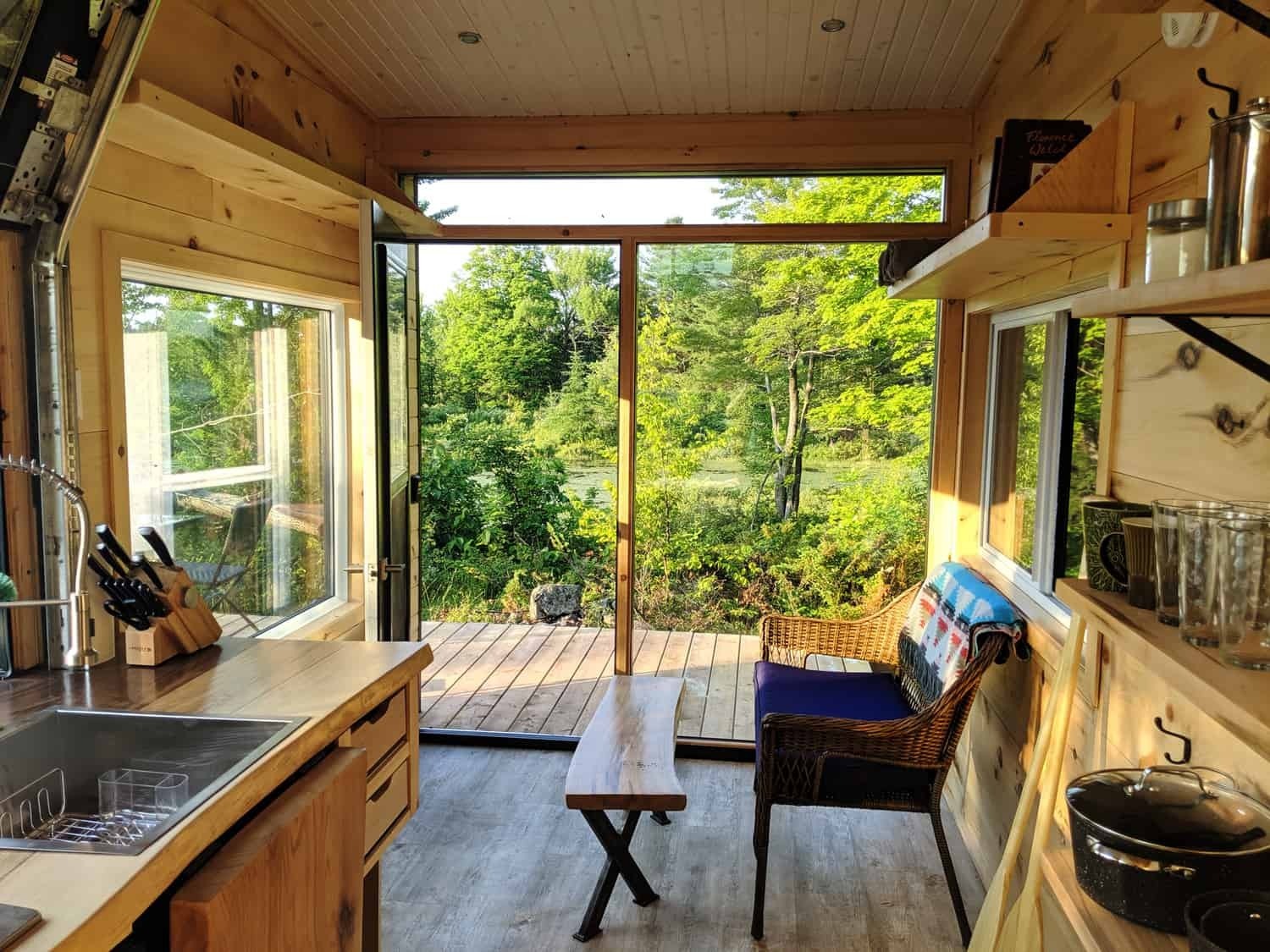 This Cabinscape is located in Lanark County, Ontario, a remarkably distinct region within the Frontenac Axis where the Canadian Shield meets the Limestone Plains. Lanark County is also the Maple Syrup Capital in Ontario! From Rhya cabin, you are just a short 15-minute drive to the gorgeous heritage town of Perth, Ontario. Here you’ll find anything you might need: groceries, LCBO, cafes, restaurants, pubs, Saturday farmers’ markets, galleries, concerts, and festivals. Visit Murphy’s Point Provincial Park (an 8-minute drive) for trails, a public beach, and tours of Silver Queen Mine (an early 1900s mica mine that plunges 20 metres deep to a subterranean tunnel of jagged, glistening mica minerals).