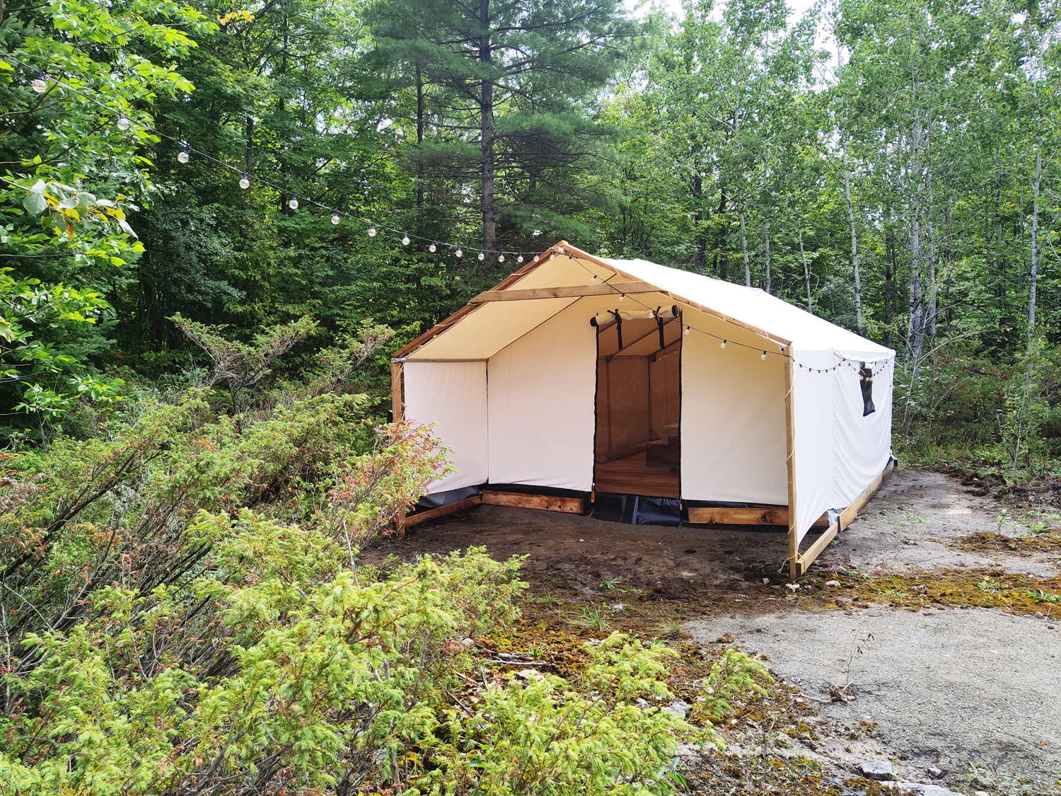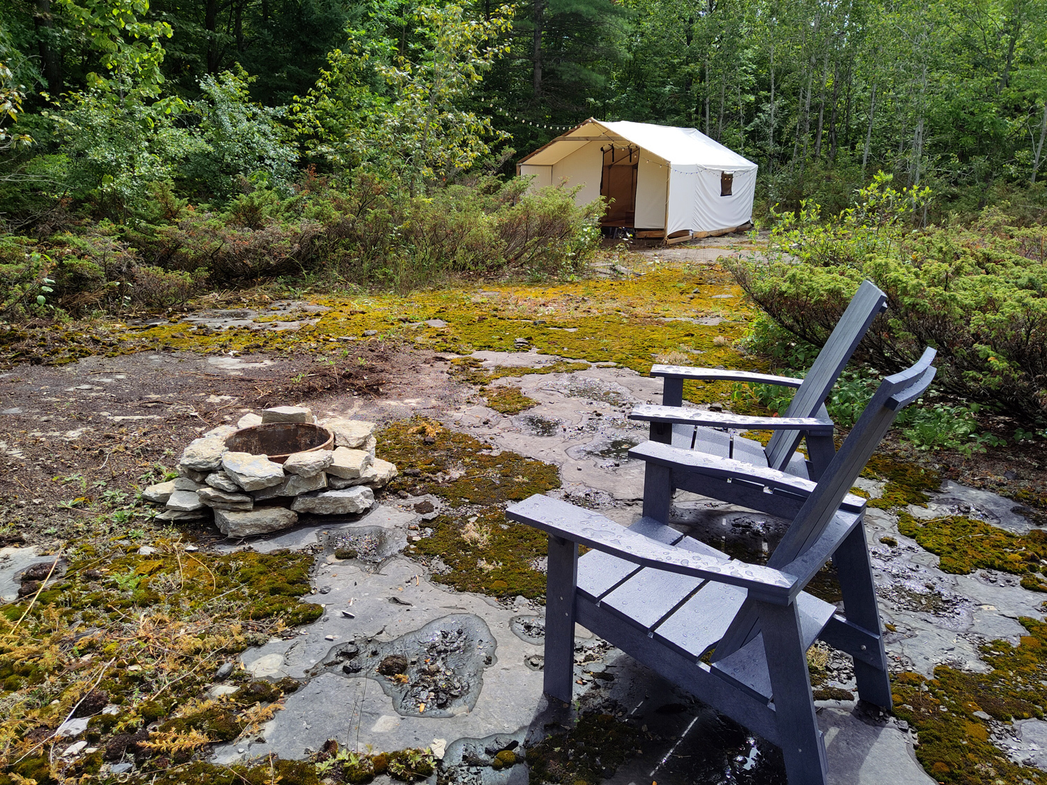 Each tent is approximately 75-250 meters away from its neighbouring tent(s). Our tents have been strategically placed to provide as much privacy as possible amongst the trees, however you will likely hear others out and about on the trails, lake and surrounding property. Sites are big, beautiful and protected, neighbouring guests are not permitted on your private site.