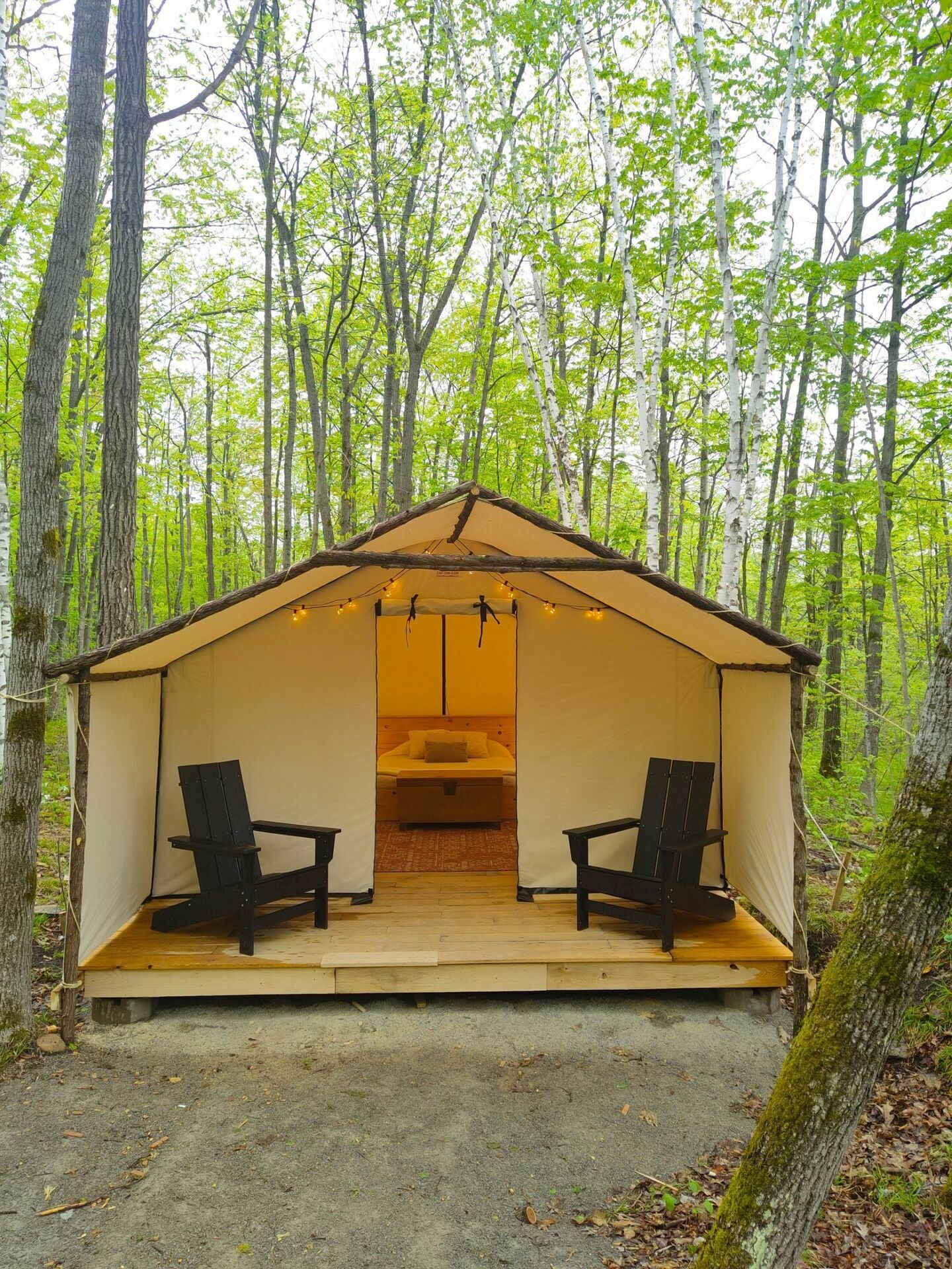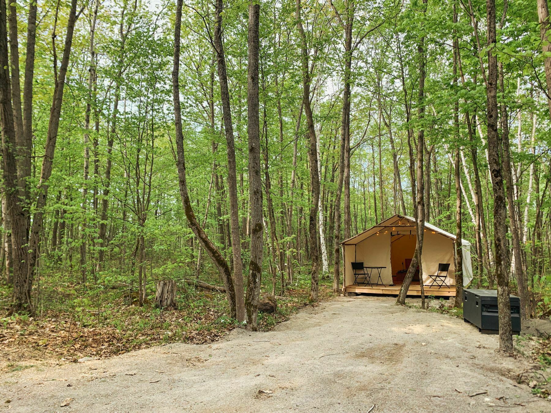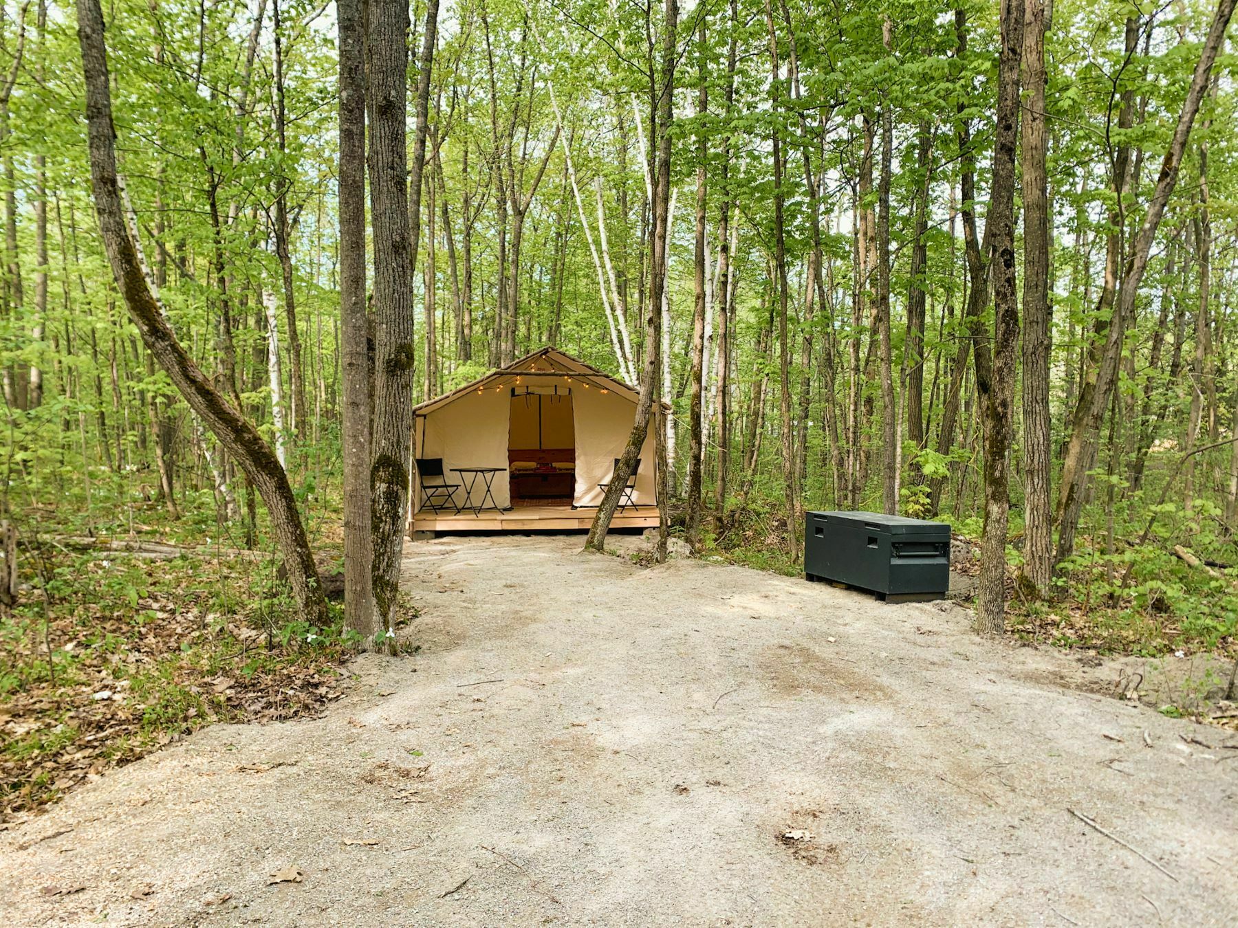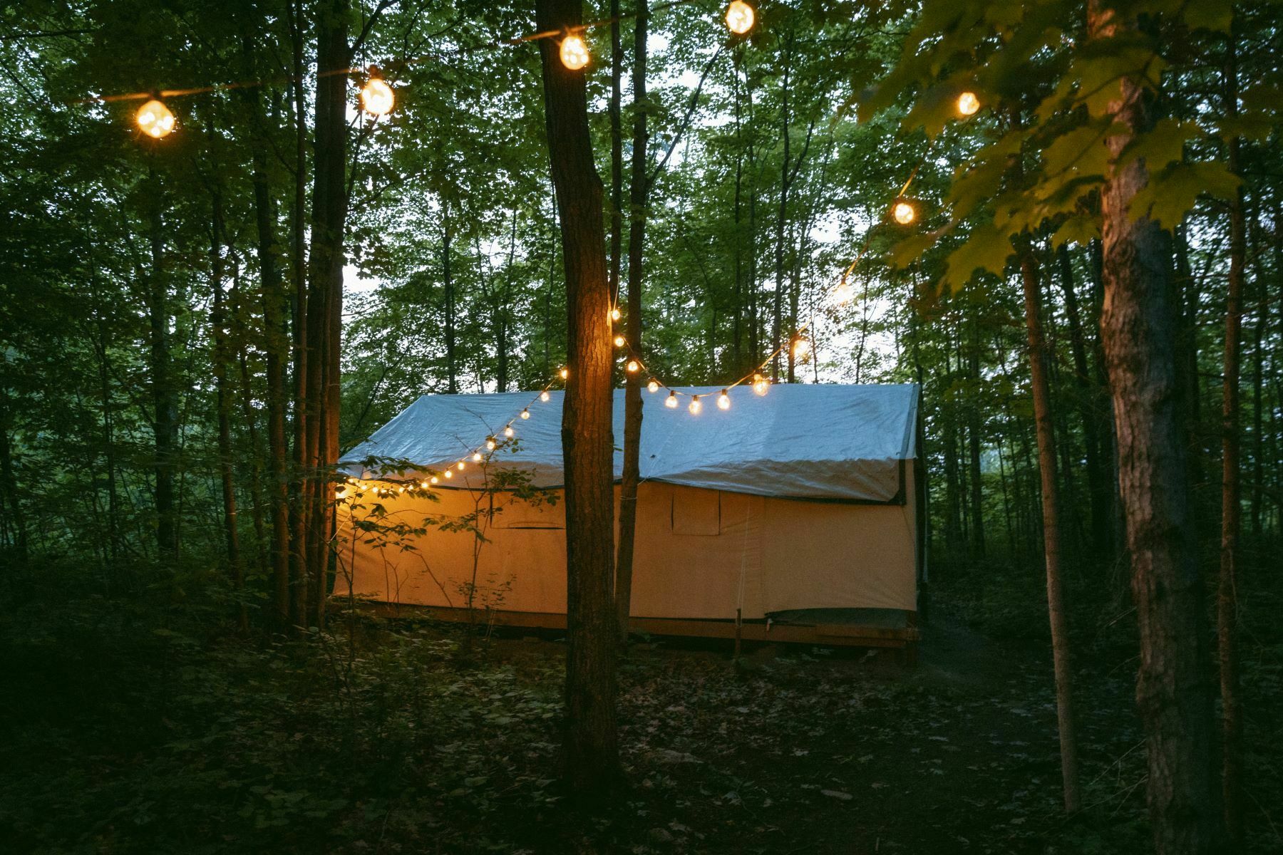 Each tent is tucked into the forest on its own private lot. All tents share communal lake access with paddle board & canoe rentals, so all guests can take advantage of this truly epic location.