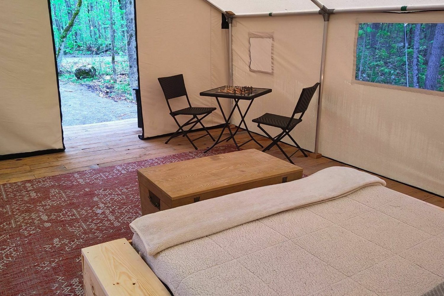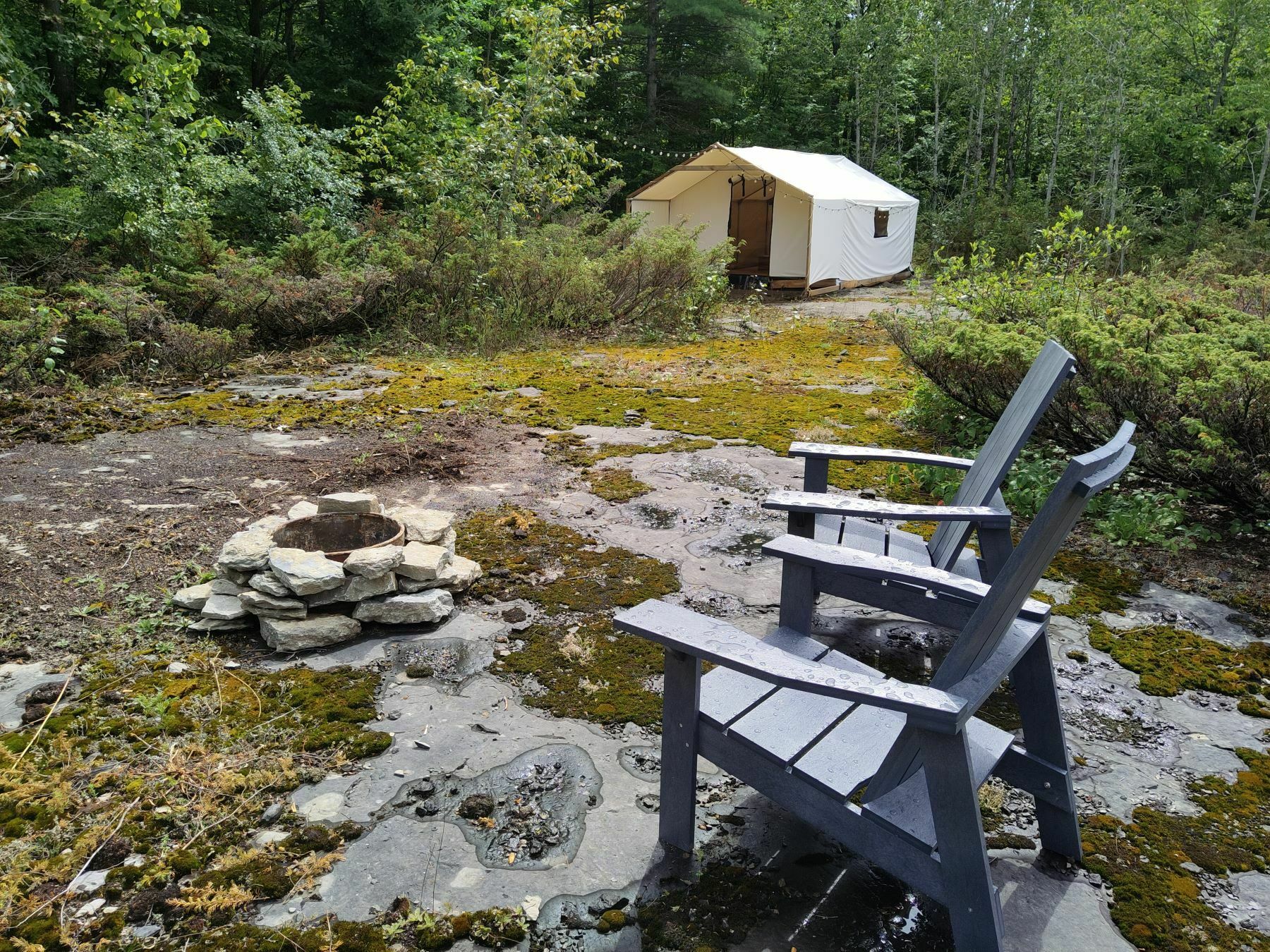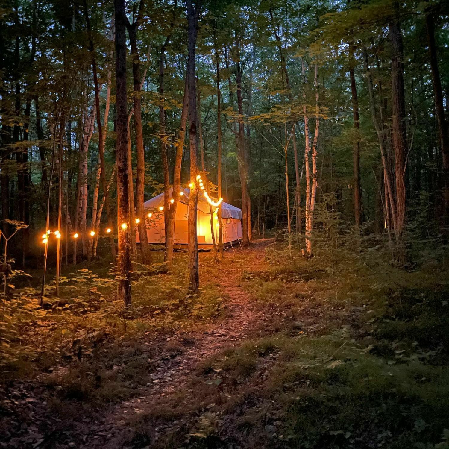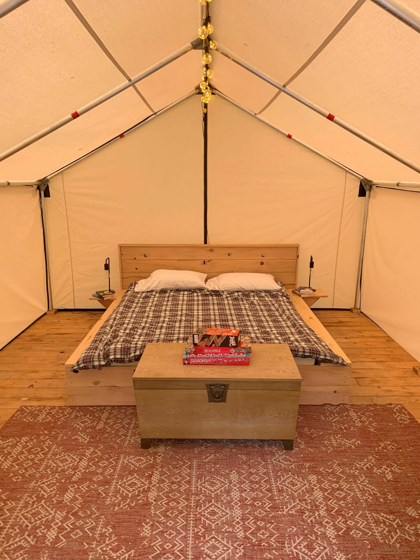 Each tent is tucked into the forest on its own private lot. All tents share communal lake access with paddle board & canoe rentals, so all guests can take advantage of this truly epic location.