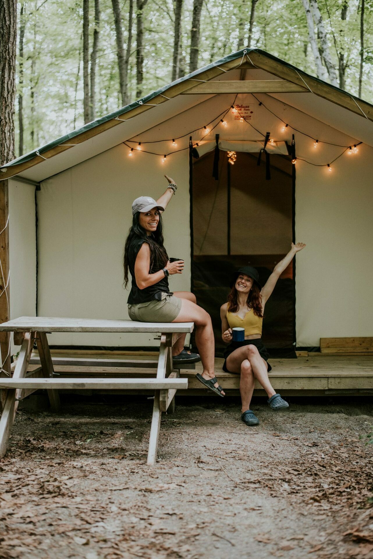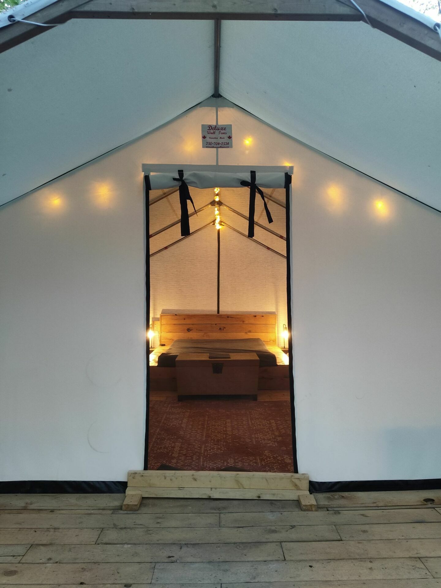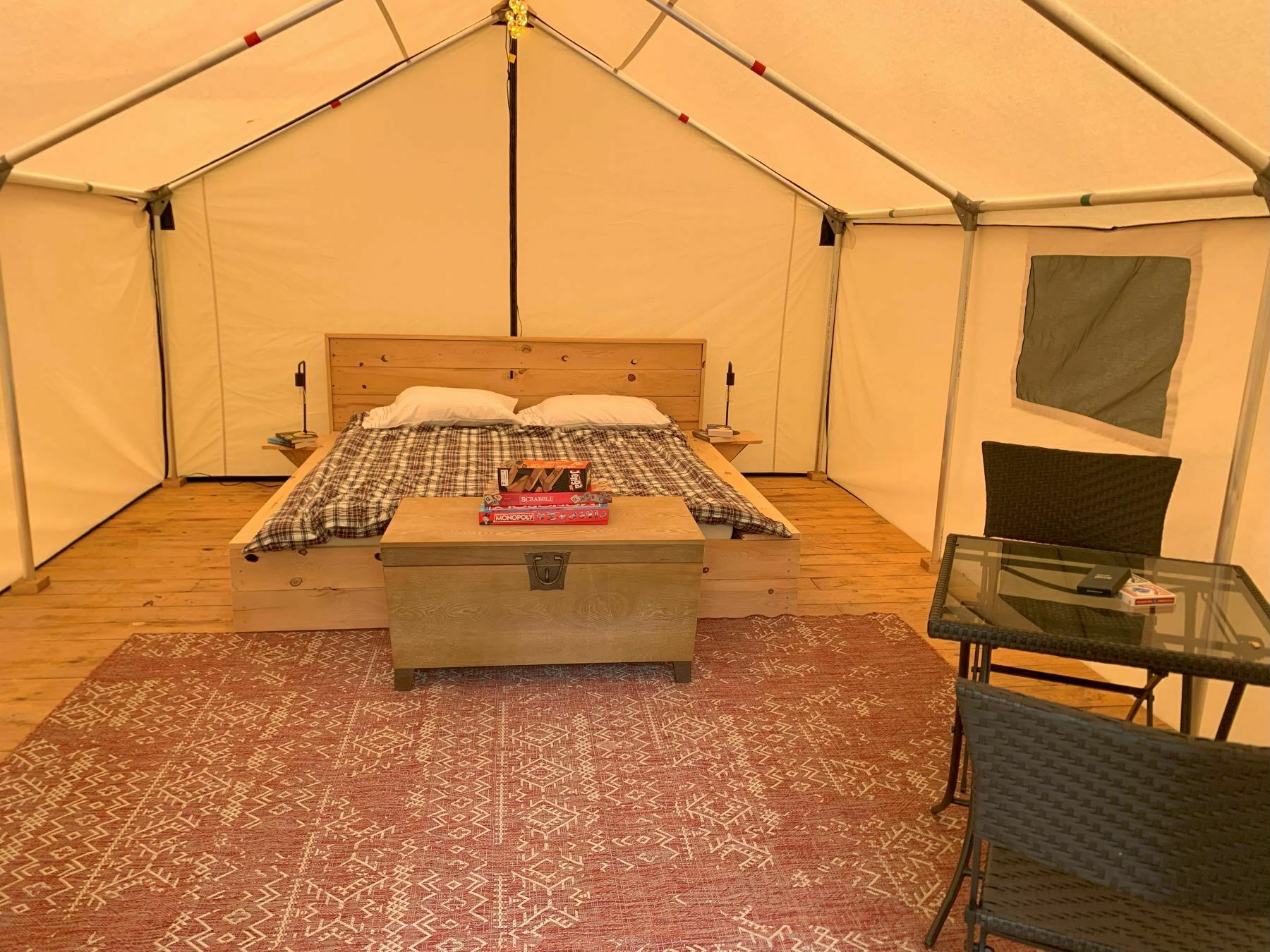 - Your own food/drink, dishware, cutlery & pots/pans for cooking (tents include a fire top grill, but guests should bring their own camp stove if preferred)
