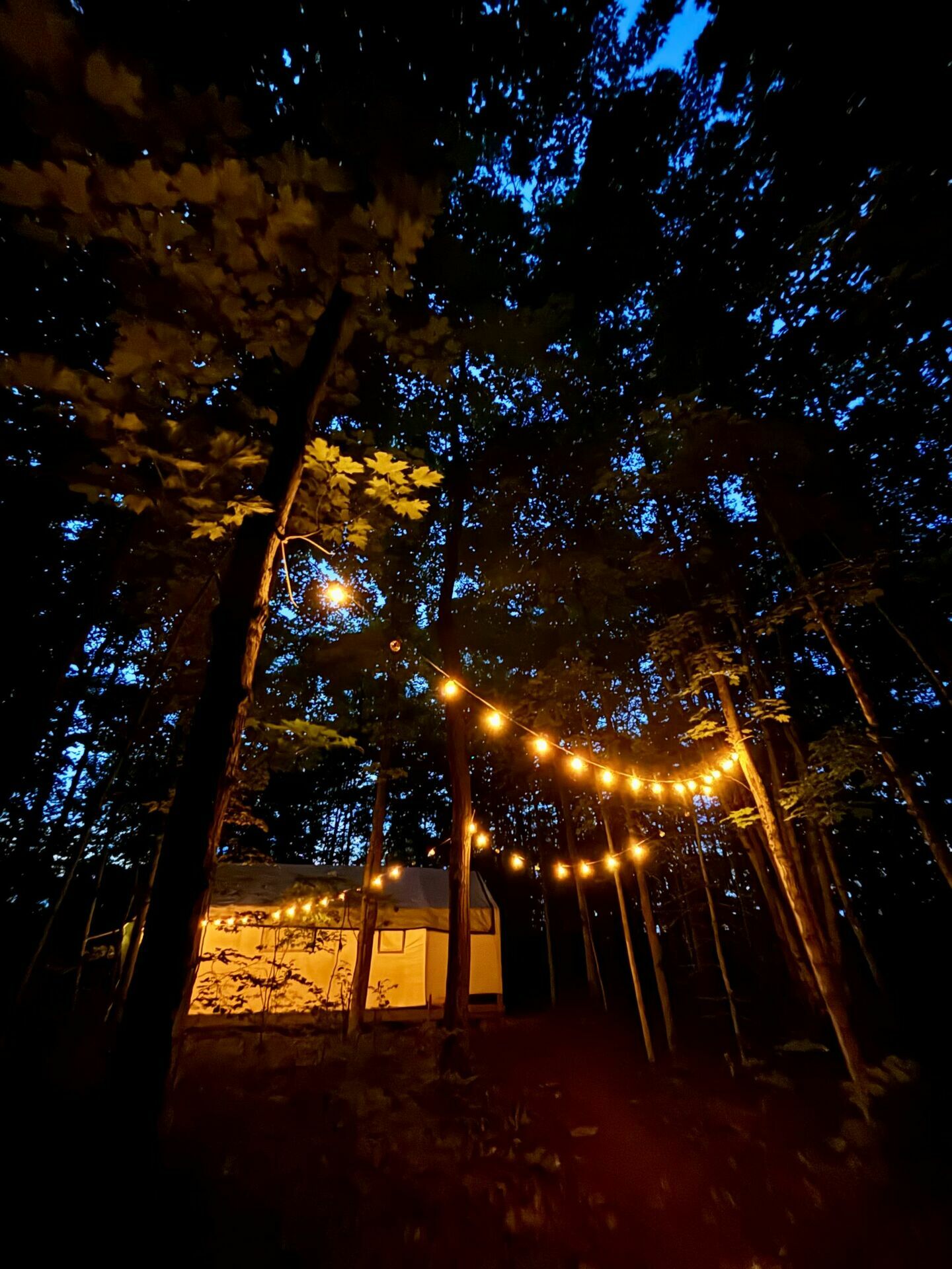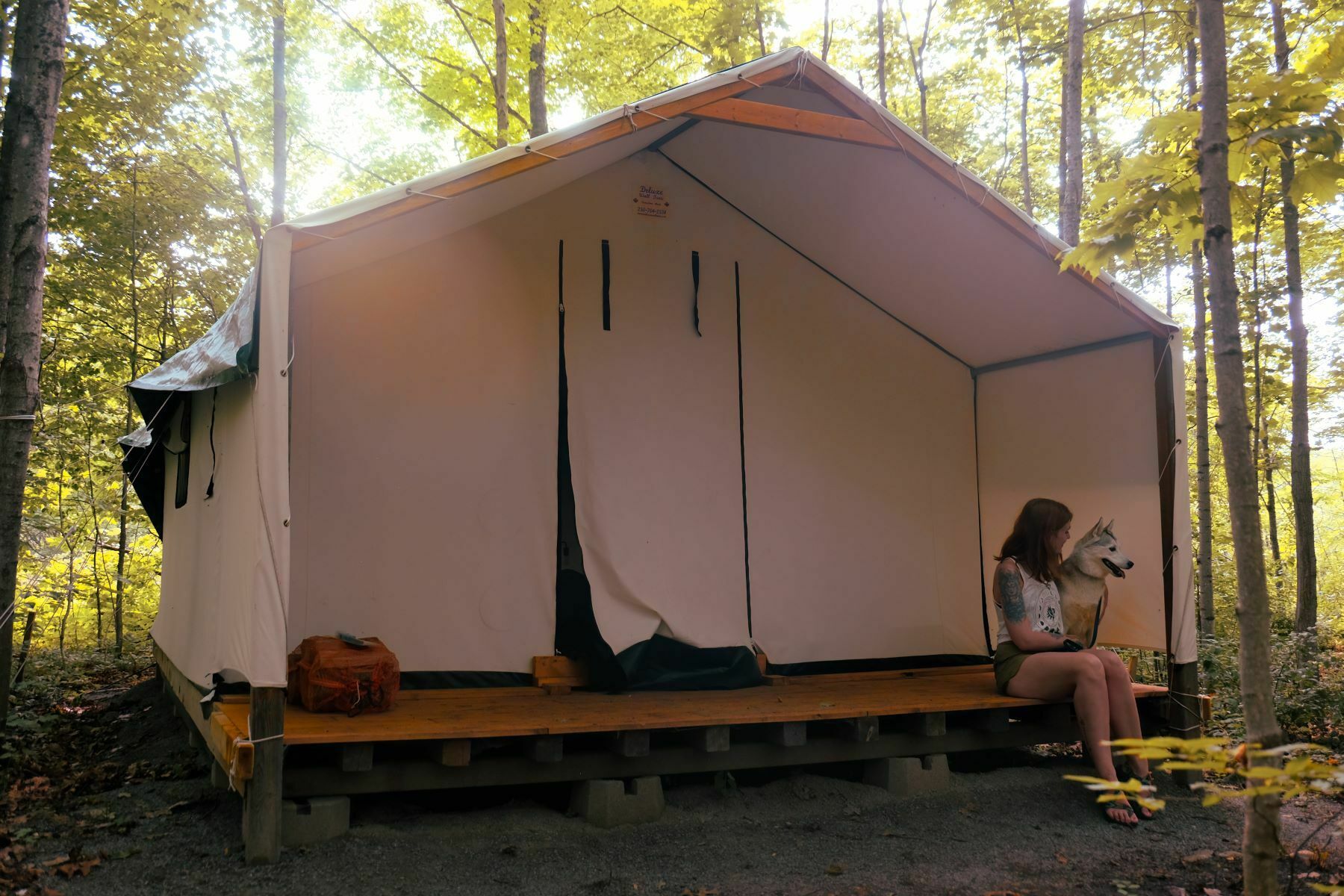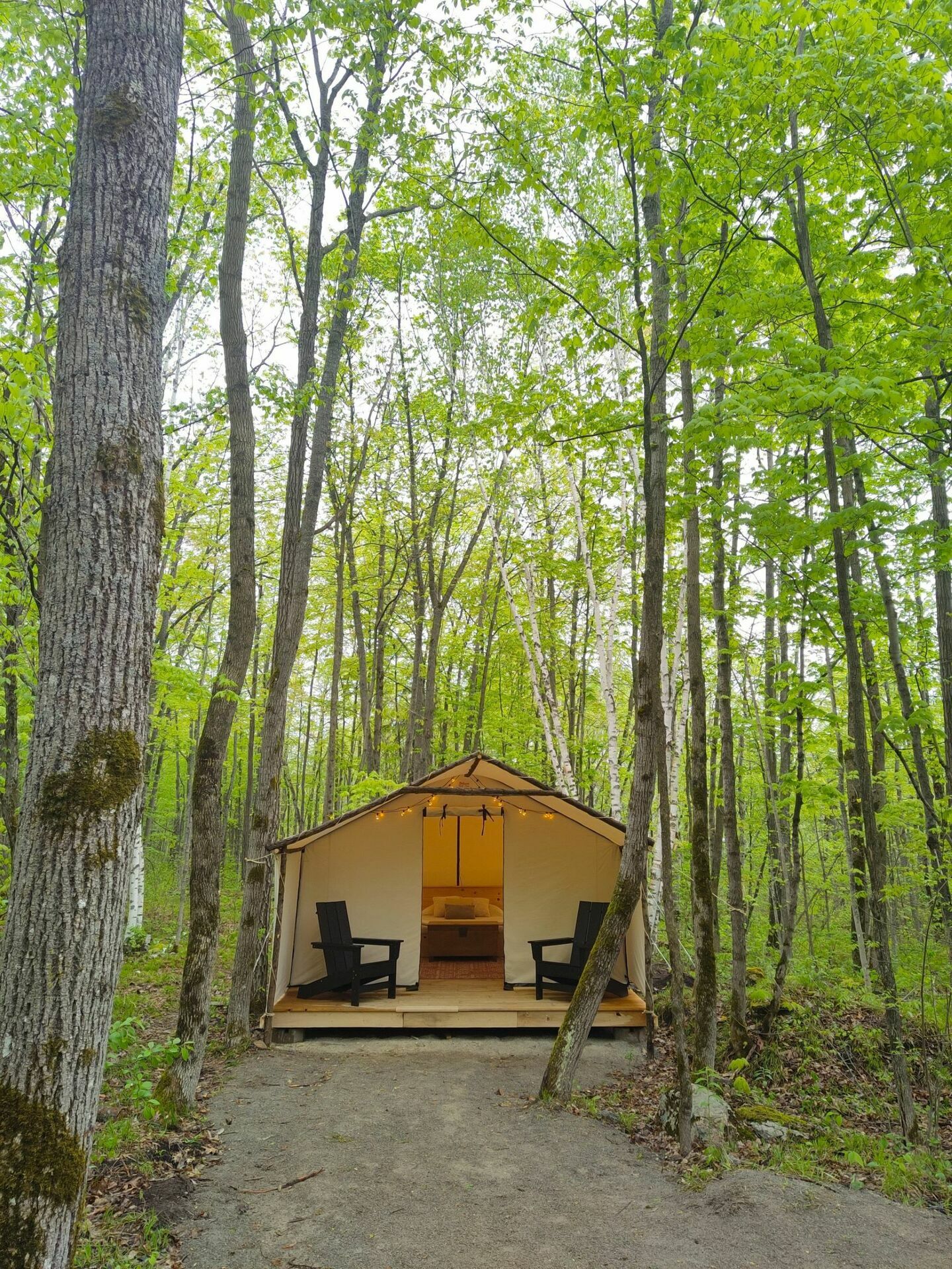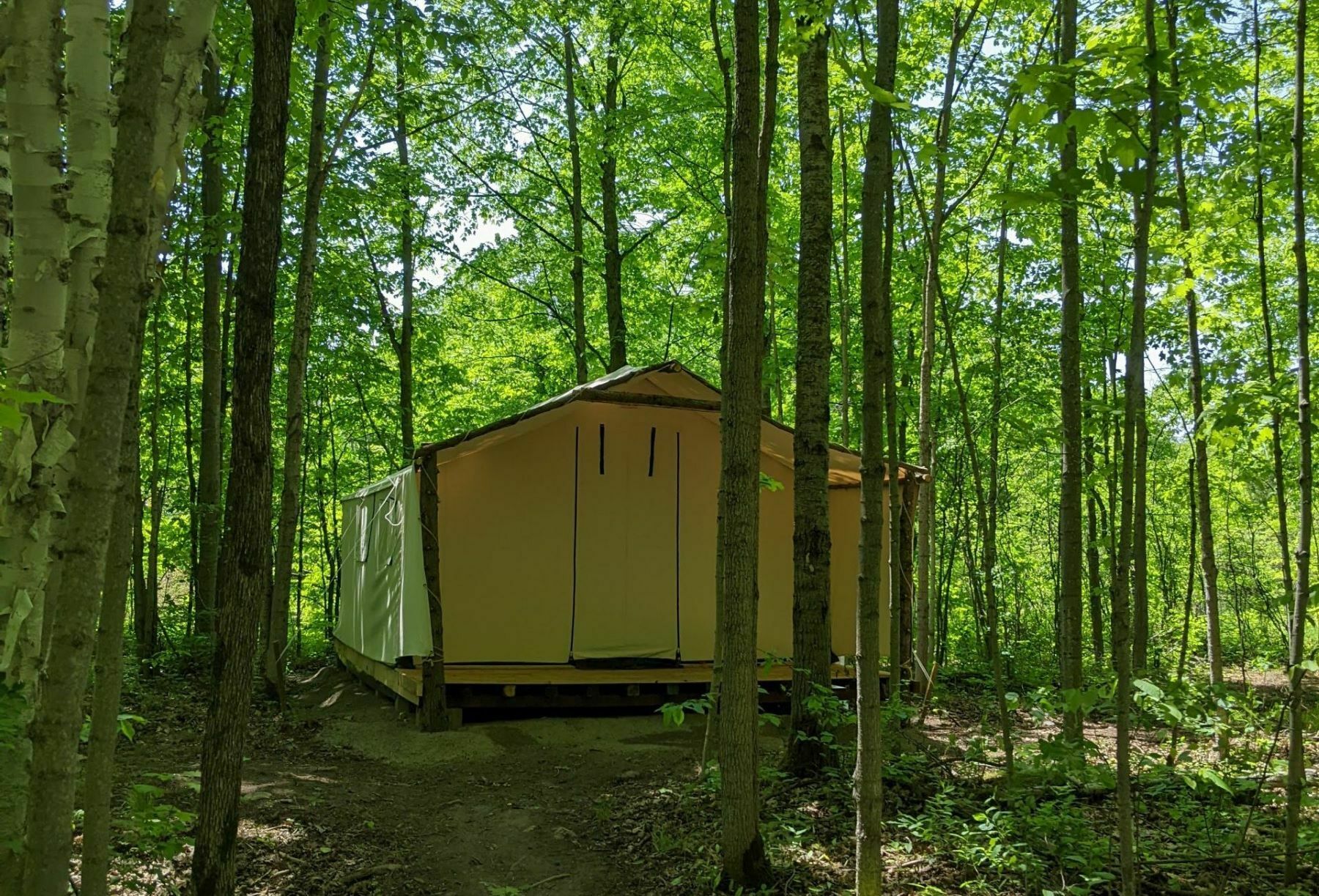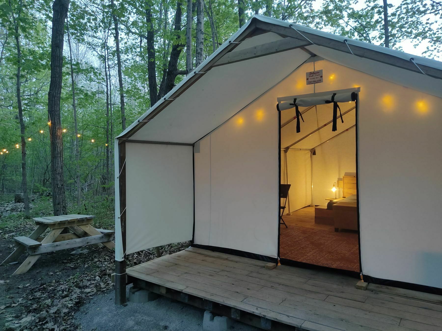Each tent is approximately 75-250 meters away from its neighbouring tent(s). Our tents have been strategically placed to provide as much privacy as possible amongst the trees, however you will likely hear others out and about on the trails, lake and surrounding property. Sites are big, beautiful and protected, neighbouring guests are not permitted on your private site.