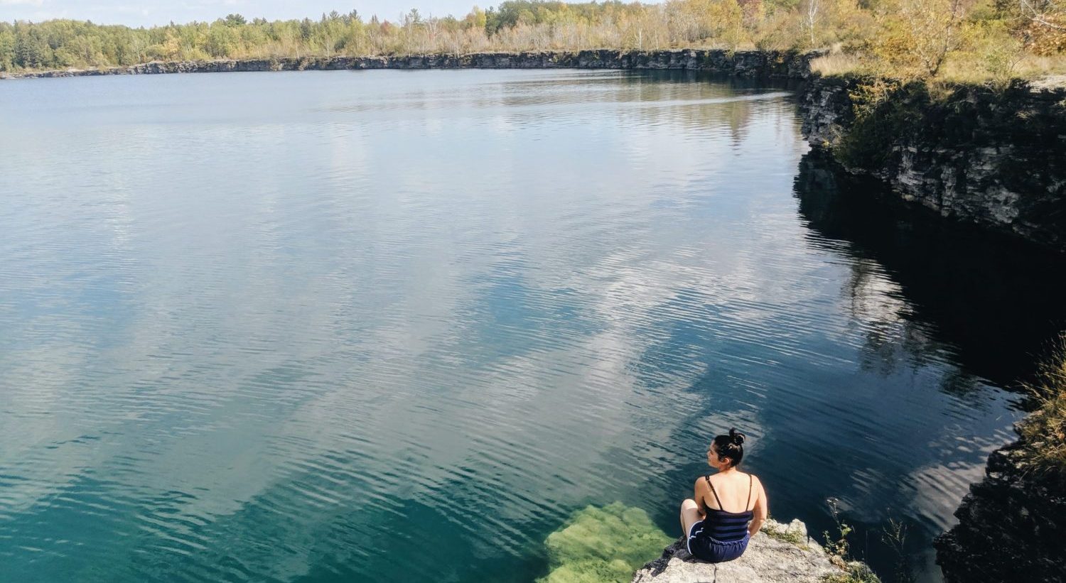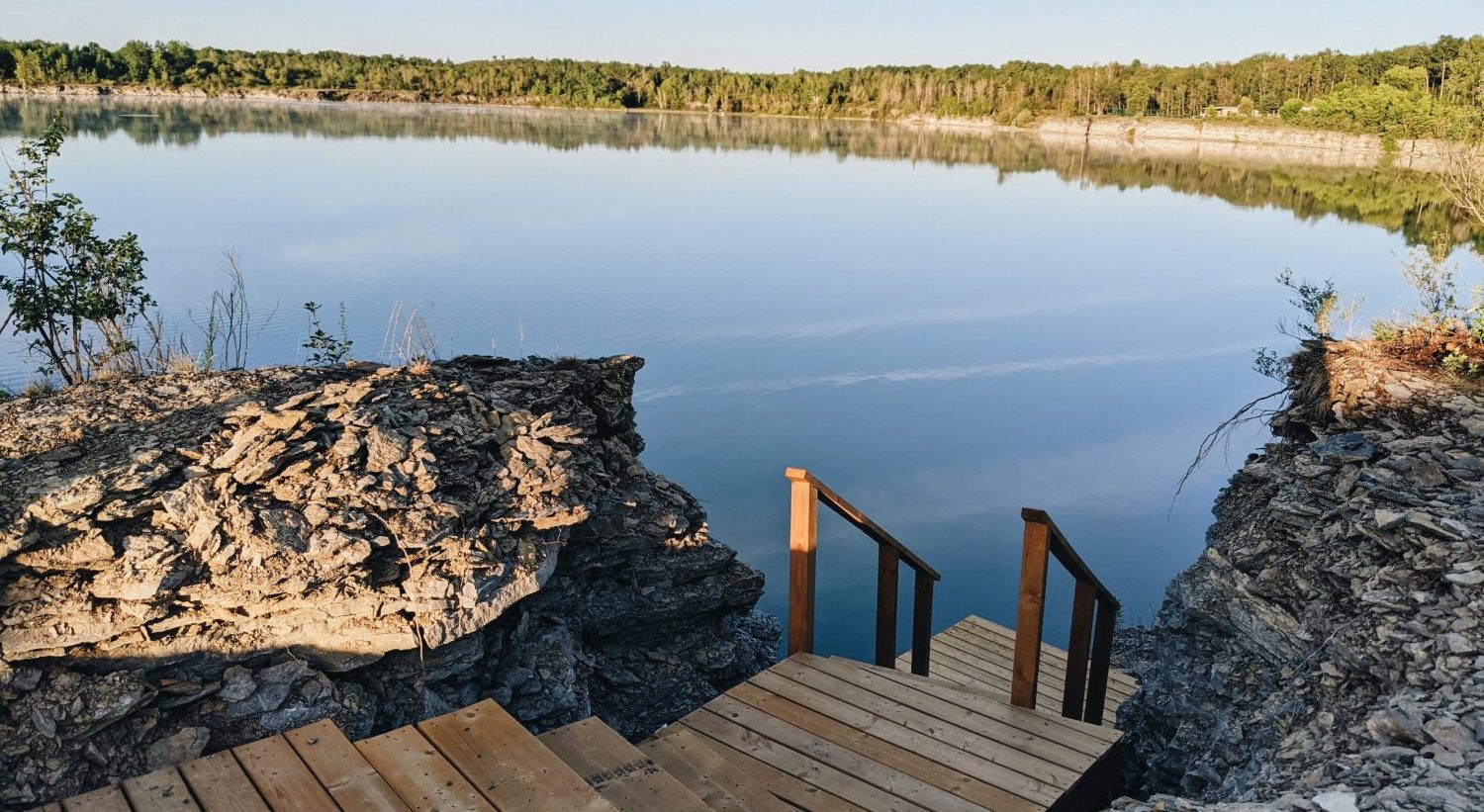 Perched on a stunning 230-acre property, Woodrush Cabin overlooks a crystal-clear, spring-fed lake that was once a limestone quarry, offering an otherworldly escape just 1.5 hours from Toronto.